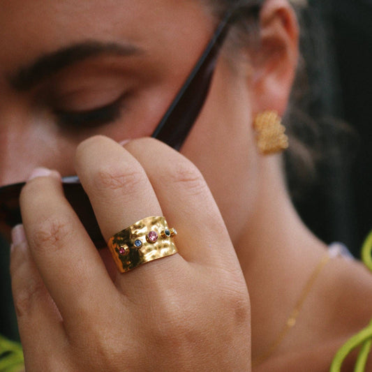 18K Non-Tarnish Bohemian Stone and Bead Bracelet: Faye-Green