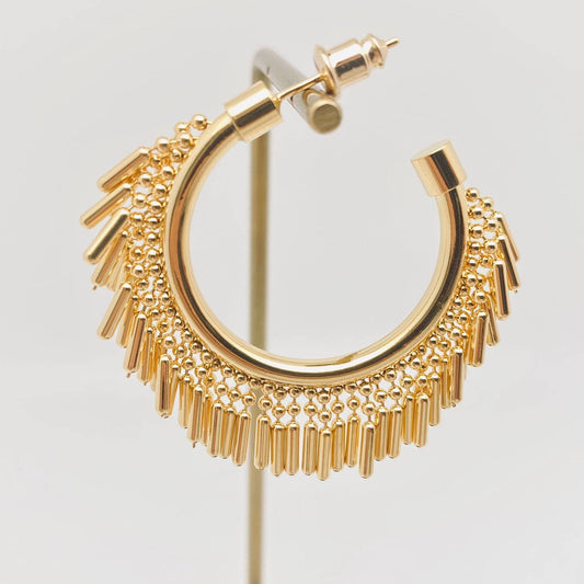 18K Gold-plated C- Shaped Tassel Hoop Earrings