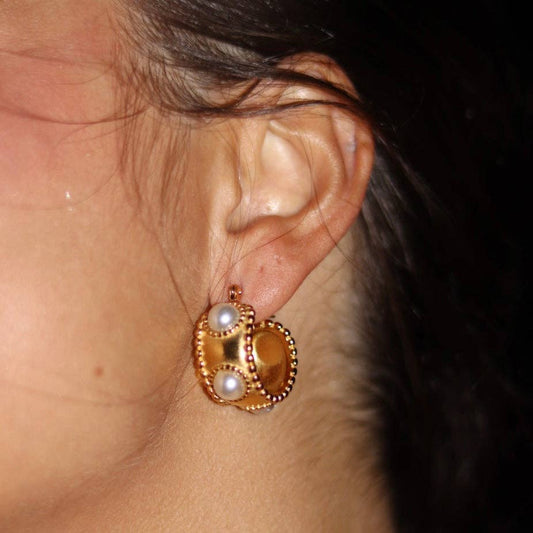 Aleah 18K Gold Non-Tarnish Bow Pearl Earring: Yellow Gold