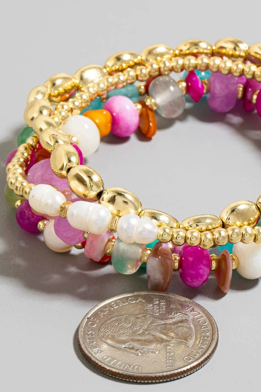 4Pc Stone And Metallic Beaded Bracelet Set: GM