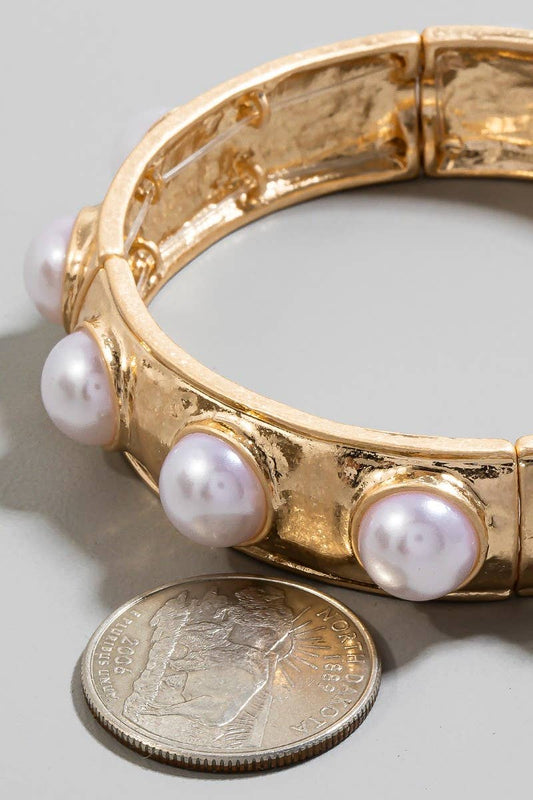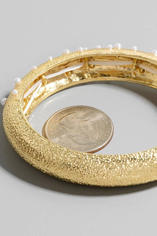 Pearl Studded Textured Elastic Bangle Bracelet: GPL