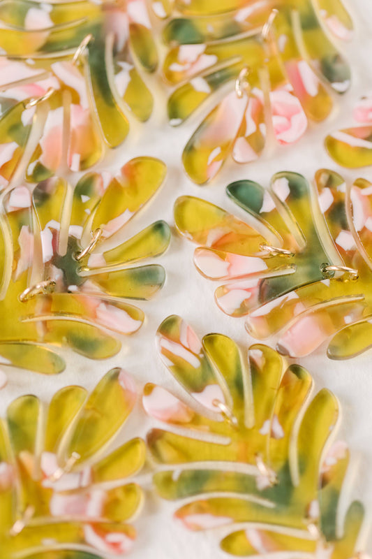 Pink and Green Camo Petite Palm Statement Drop Earrings