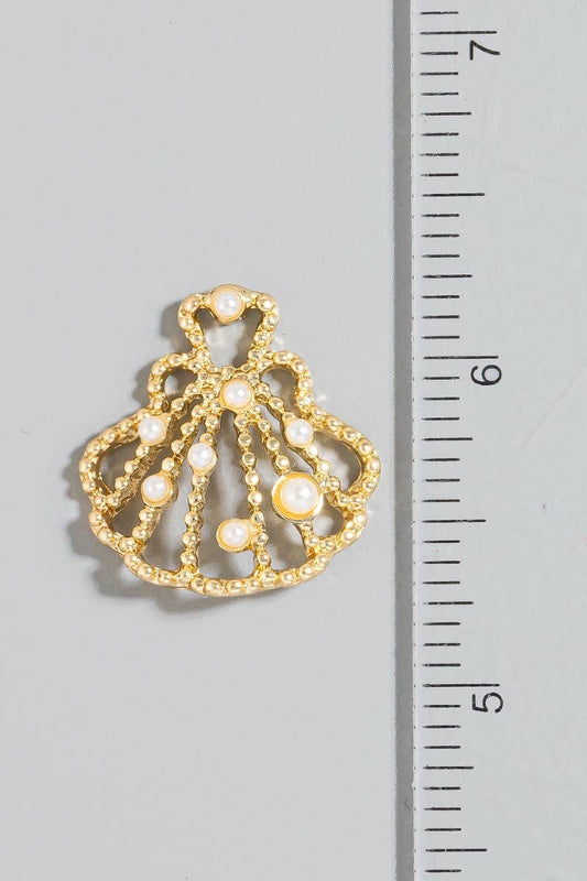 Pearl Studded Metallic Clam Shell Stud Drop Earrings: GDCRM