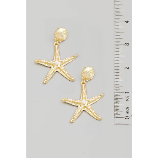 Pearl Studded Starfish Charm Dangle Earrings: CRMGD