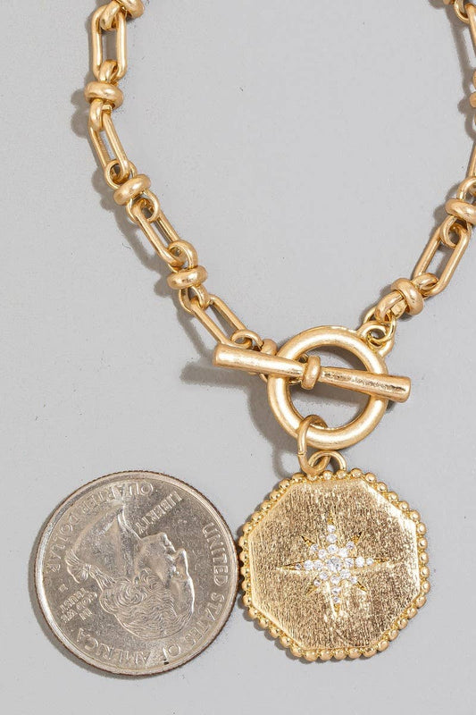 Studded North Star Coin Charm Toggle Chain Bracelet: WGCR