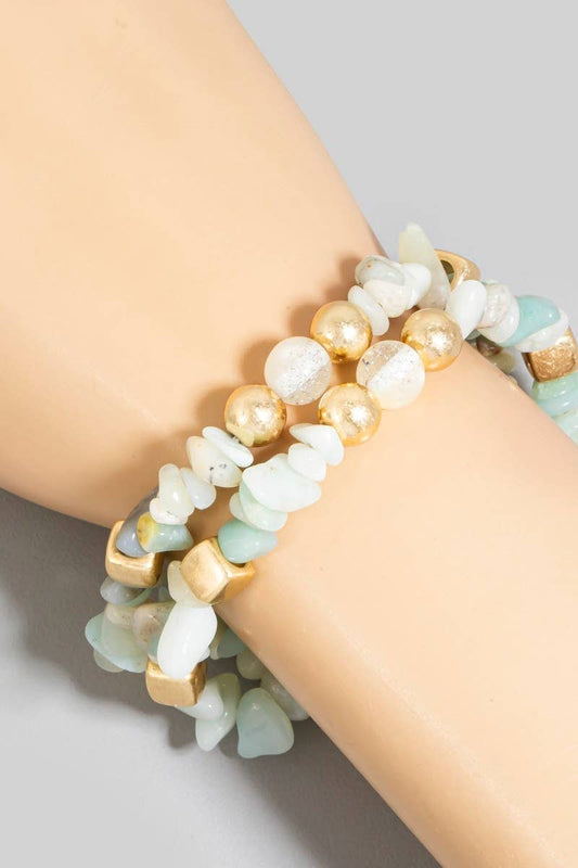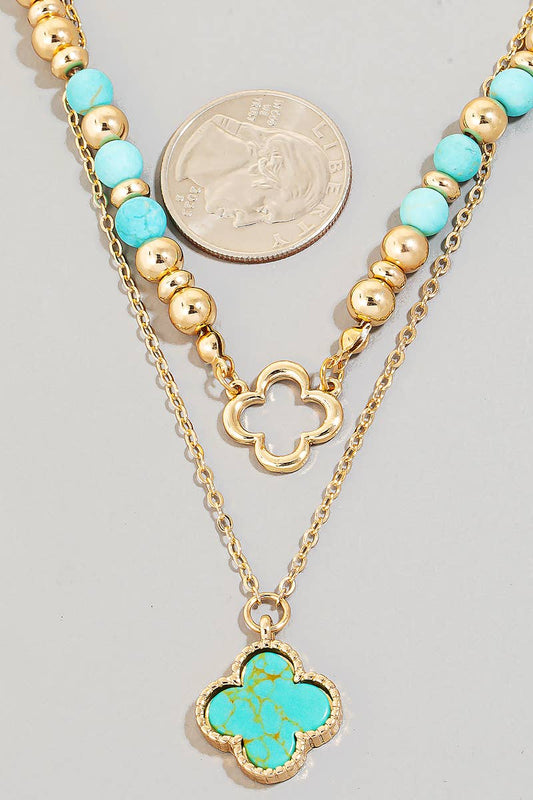 Stone Clover Pendant Layered Beaded Chain Necklace: GDTQ