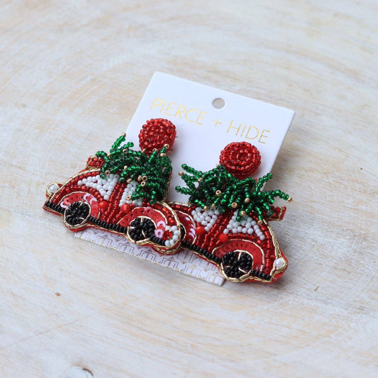 Beaded Christmas Tree Car Earring | Holiday Earrings