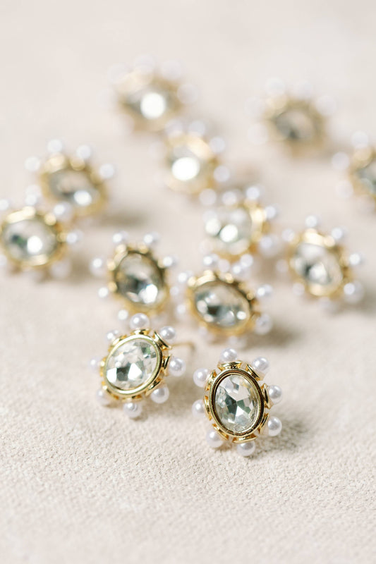 Clear Crystal Bezel Pendant Dot Chain Neckline Necklace: Gold Tone