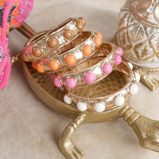 Eternity Statement Bangle Gold Tone Cream Orange Brown Pink Black Turquoise Pearl: Pearl