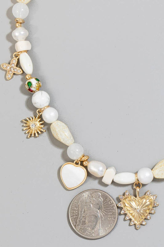 Mixed Beads And Heart Charms Chain Necklace: GDIVY