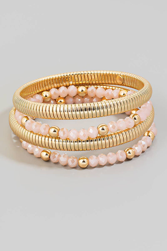 Mixed Beads And Metallic Coil Elastic Bracelet Set: LMULTIGD