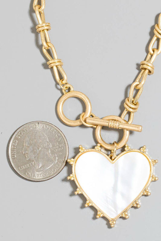 Mother Of Pearl Heart Charm Toggle Chain Bracelet: WGCRM