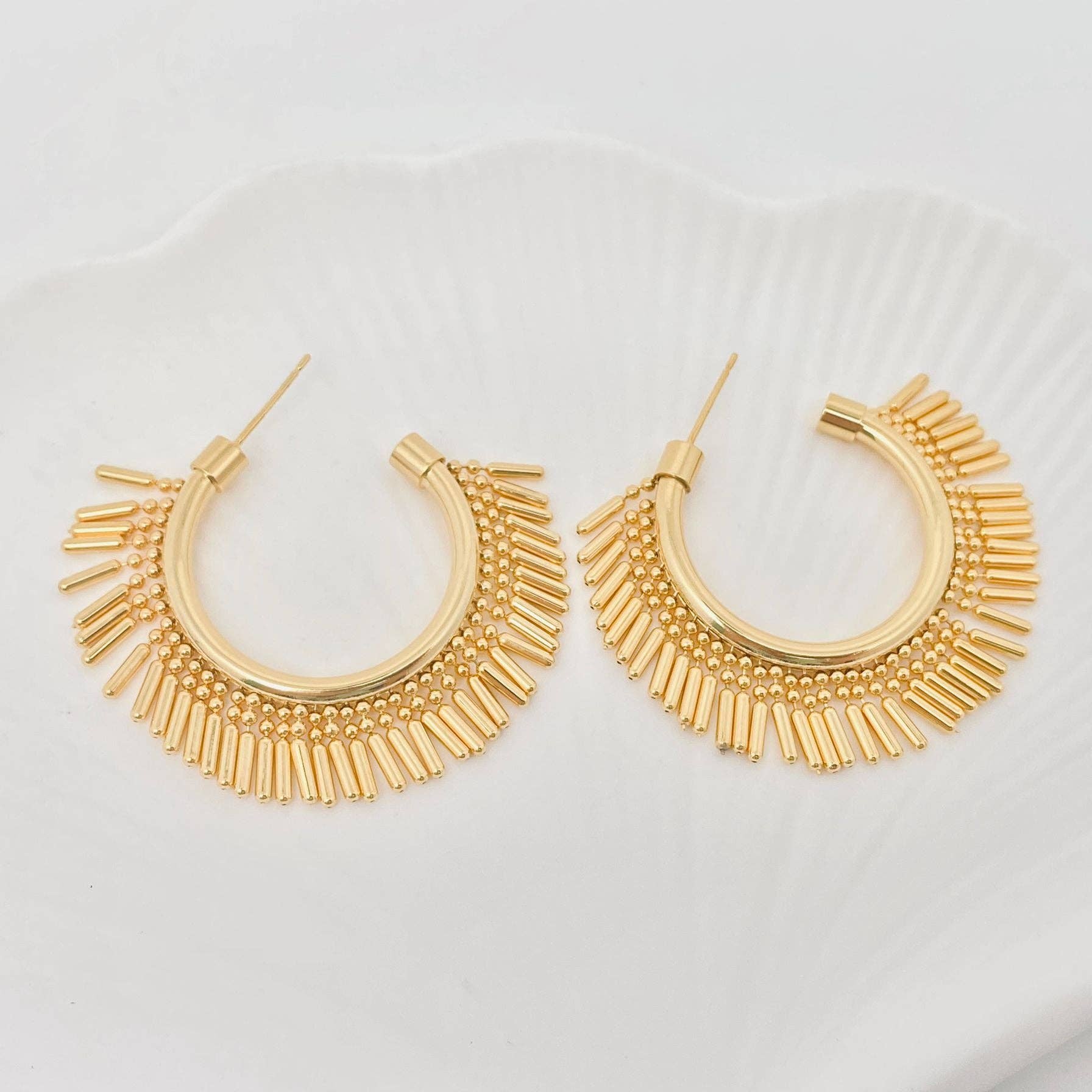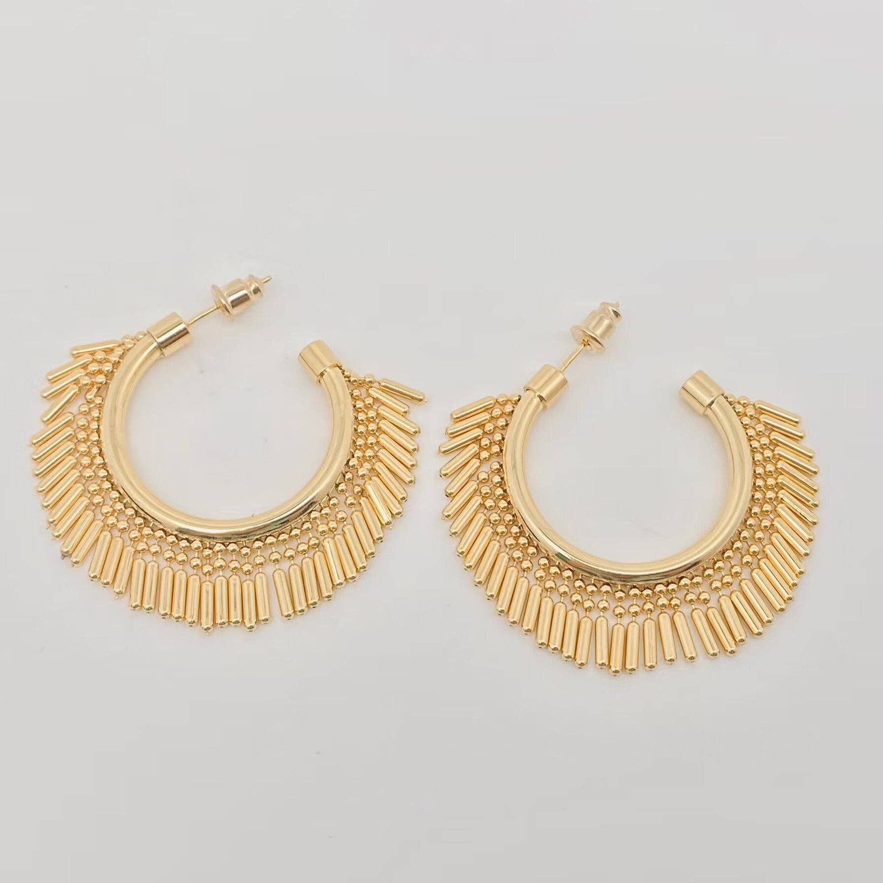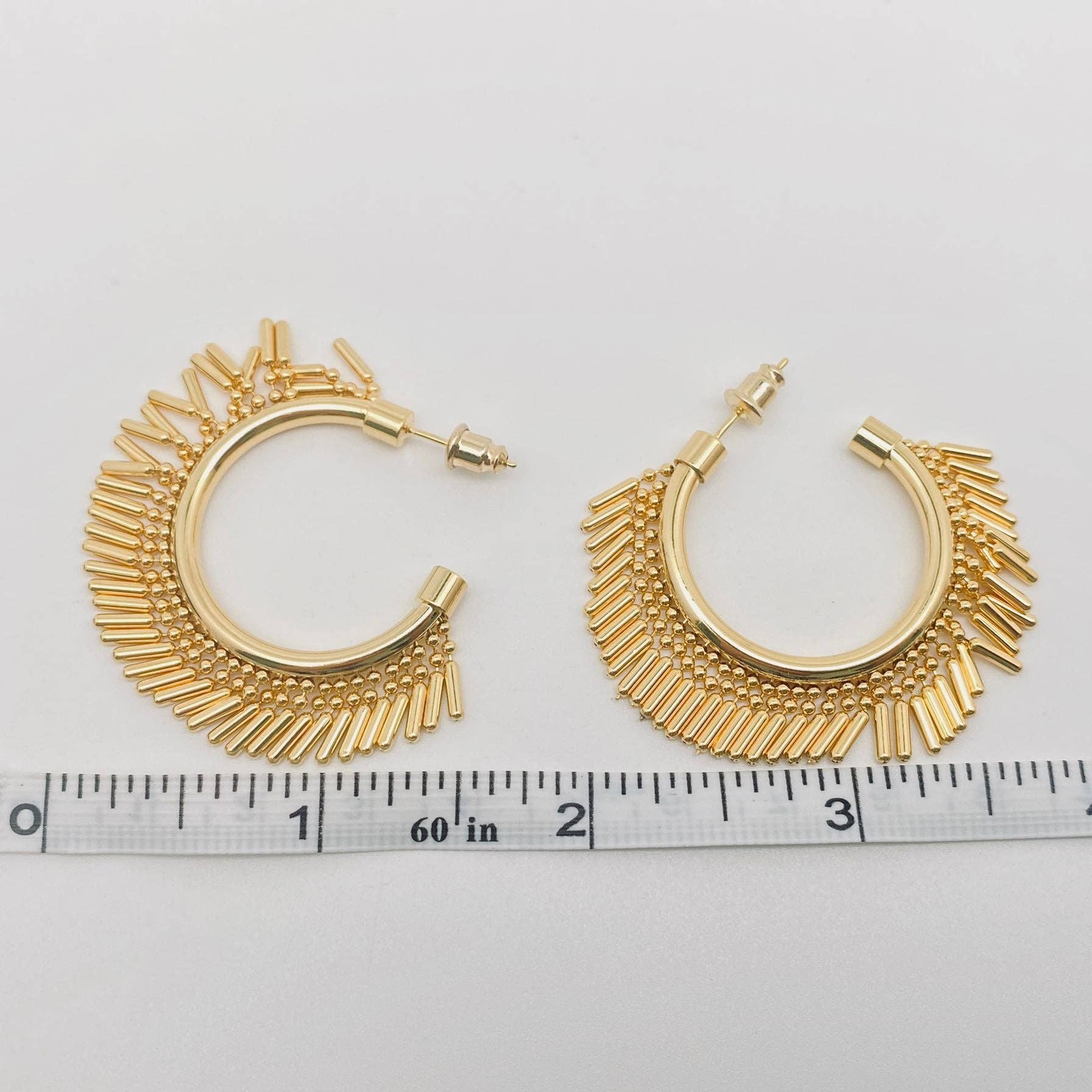 18K Gold-plated C- Shaped Tassel Hoop Earrings