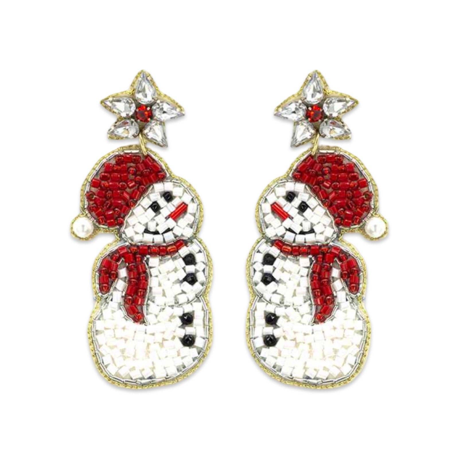 Beaded Snowman Earrings | Holiday Earrings | Christmas Earring