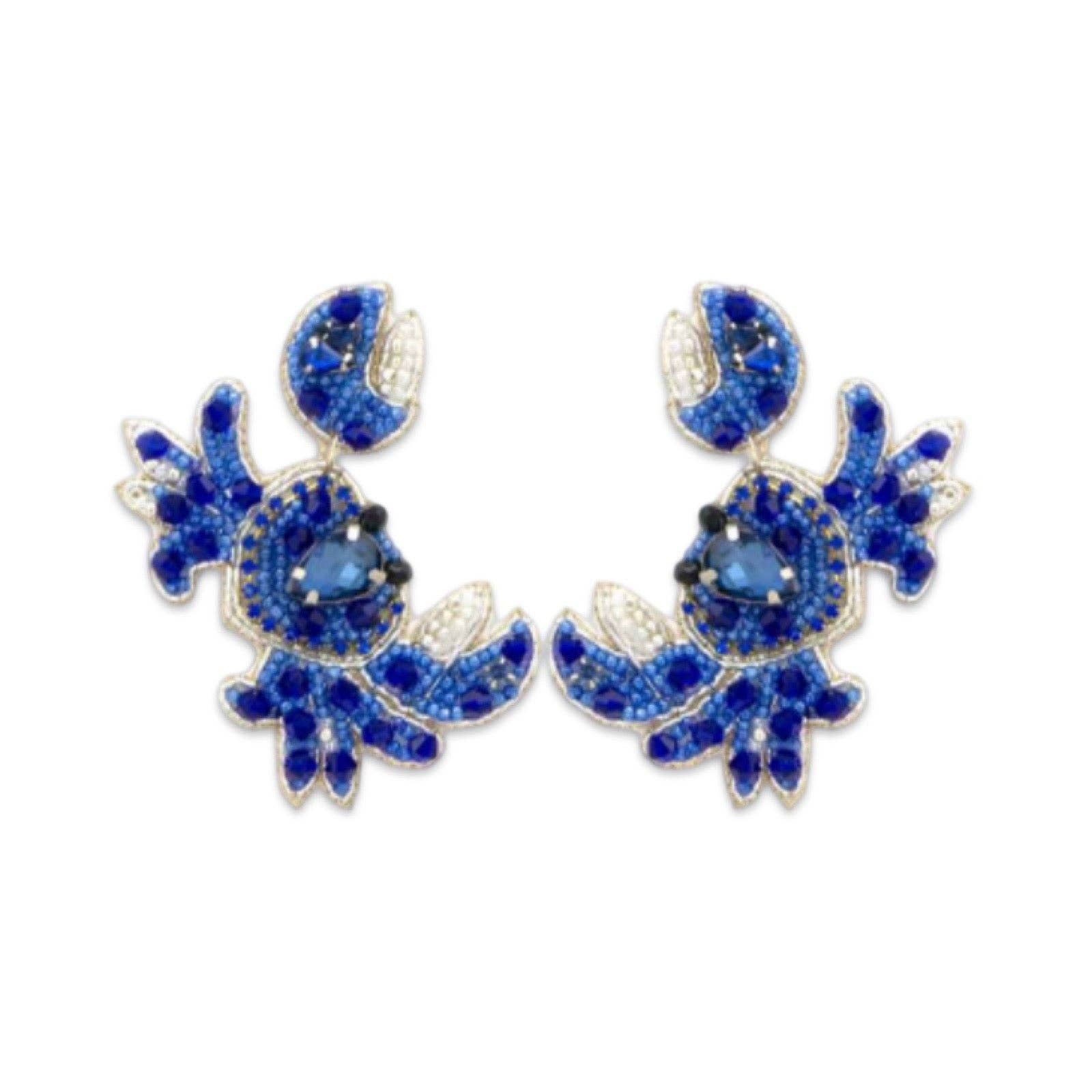 Coastal Blue Beaded Crab Earring | Resort Earring| Coastal