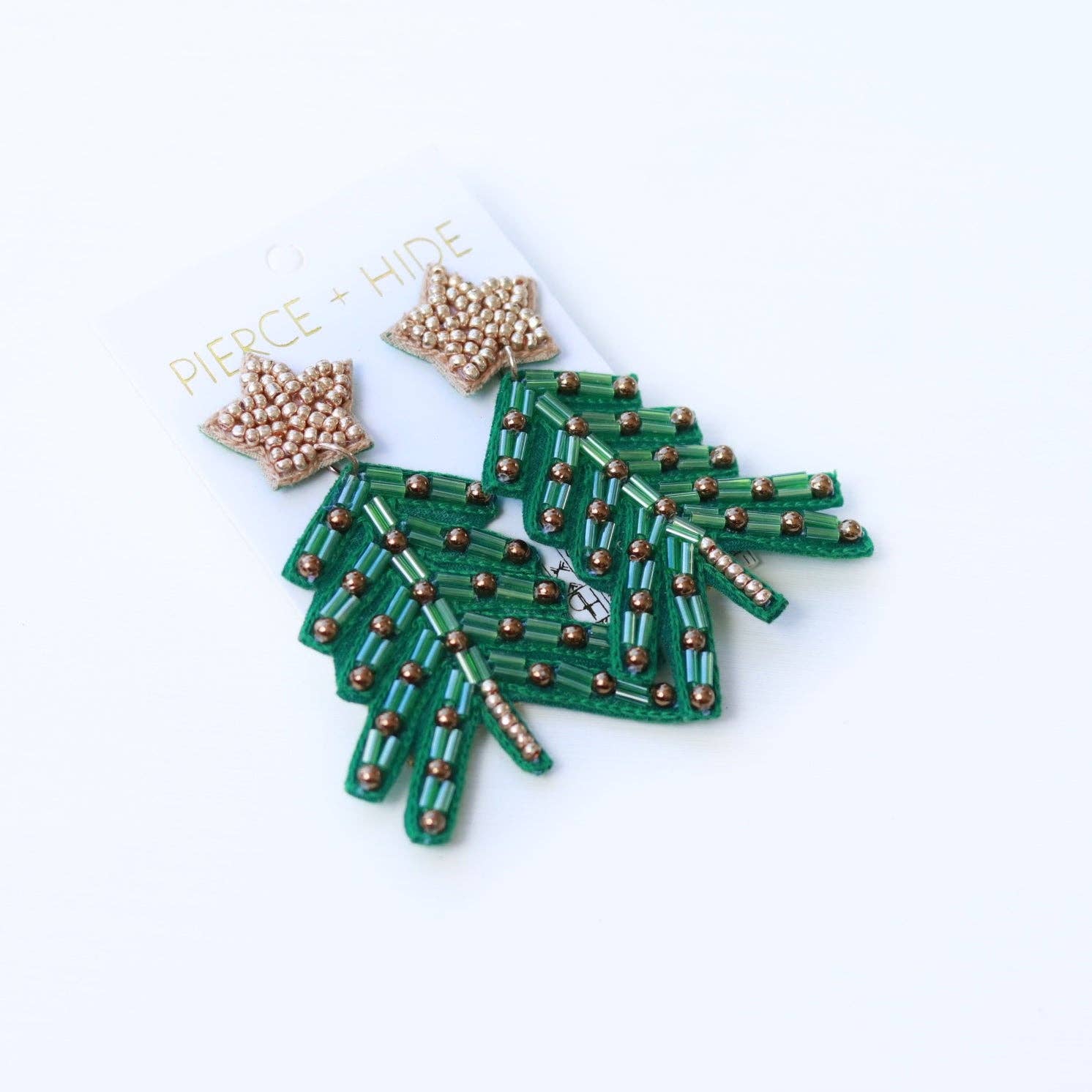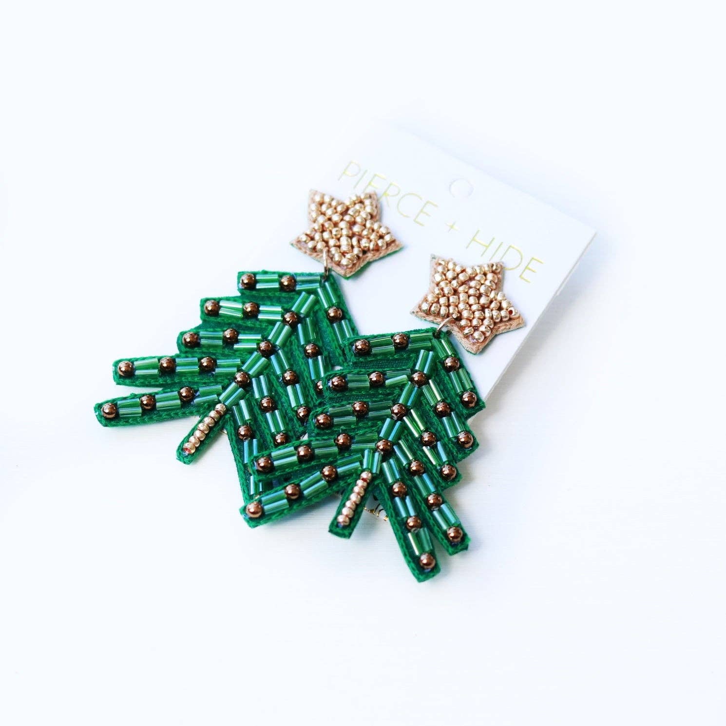Custom Beaded Green Boho Christmas Tree Earrings| CHRISTMAS EARRINGS