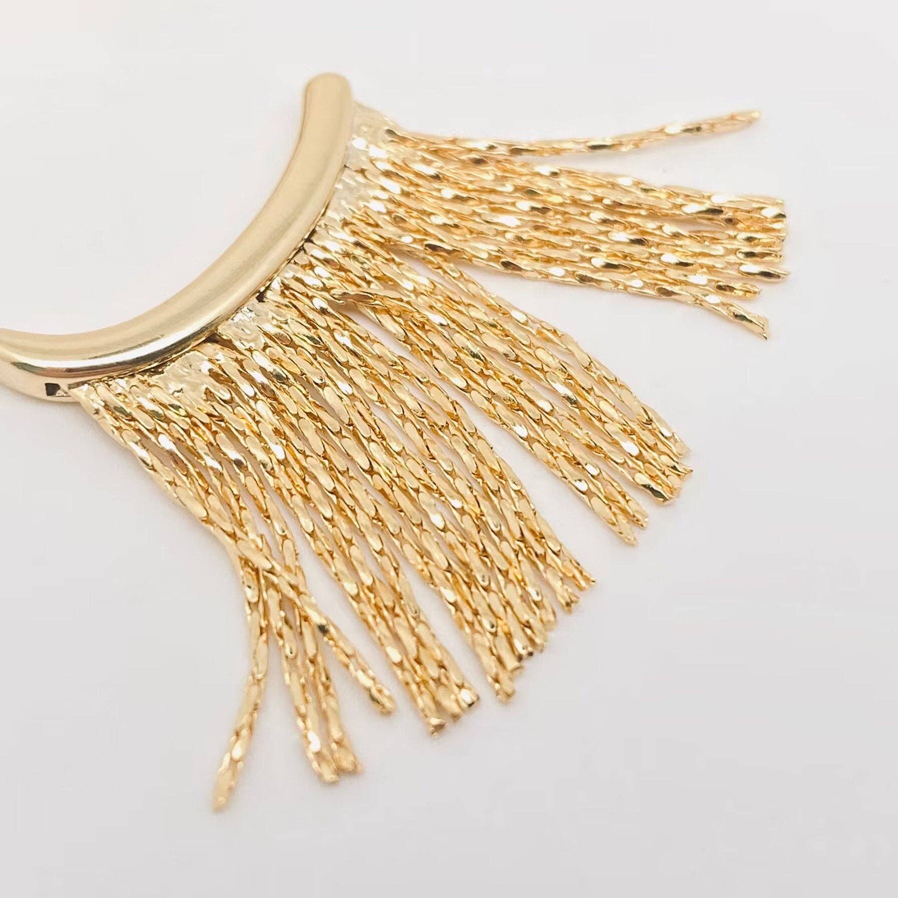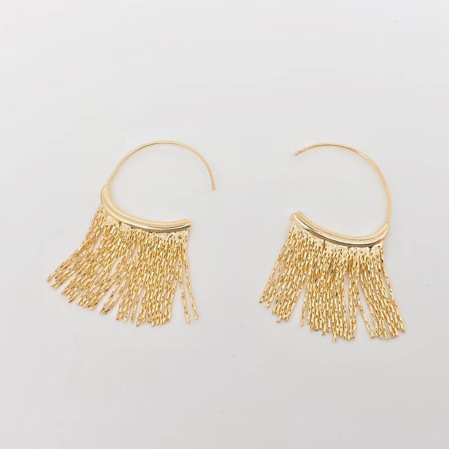 Gold Plated Metal Chain Tassel Hoop Earrings
