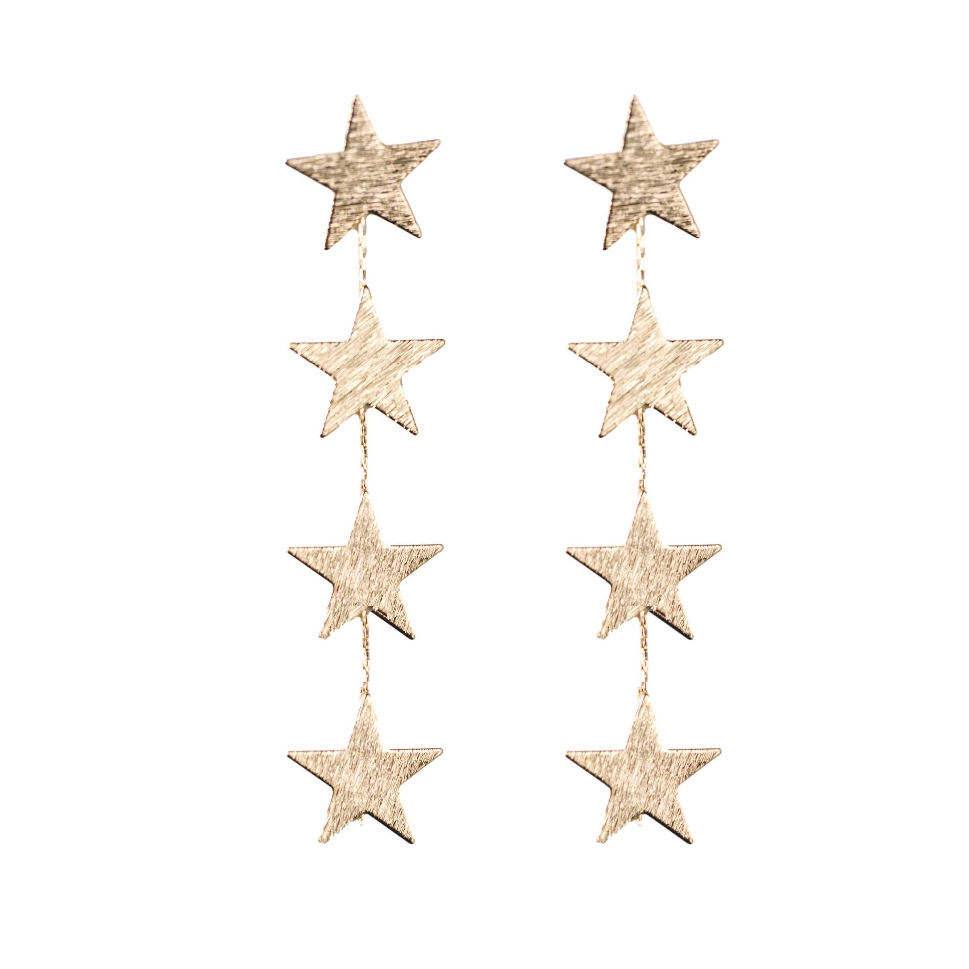 Shine bright this 4th of July with our stunning Gold Star Statement Earrings, featuring four interlinked stars that radiate patriotic charm. These dazzling earrings are the ideal accessory to complement your red, white, and blue outfits, adding a touch of gold sparkle to your festive celebrations. At 3.5 inches long, they are essentially weightless, ensuring comfort while making a bold statement. Also a great option for Christmas and holiday jewelry!