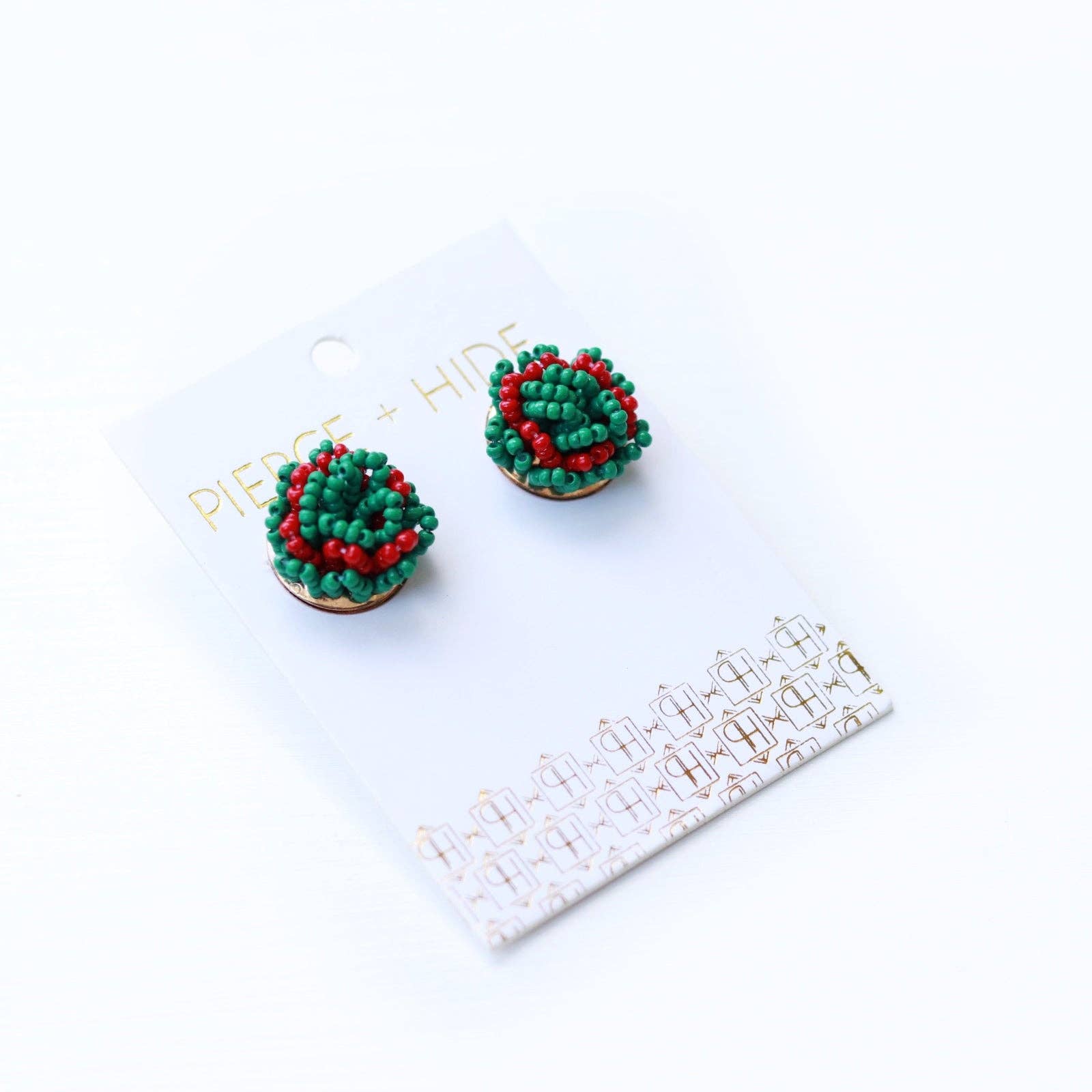 Green + Red Pom Stud Earrings | Christmas Stud | Holiday Earring