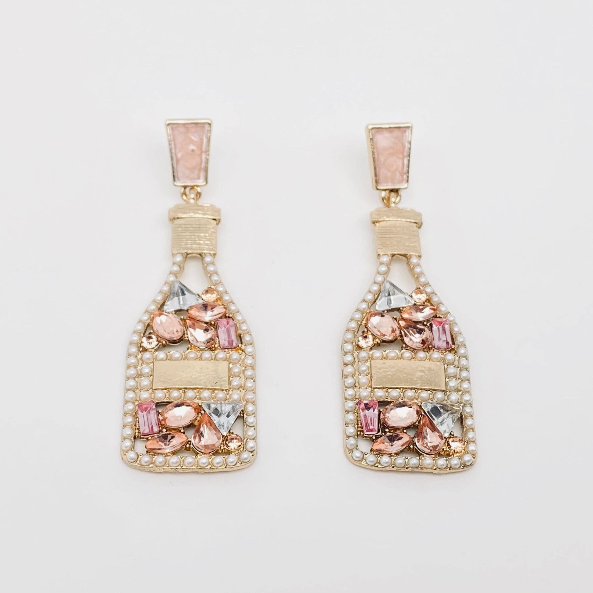 Hollow Rhinestone Bottle Stud Earrings: Gold