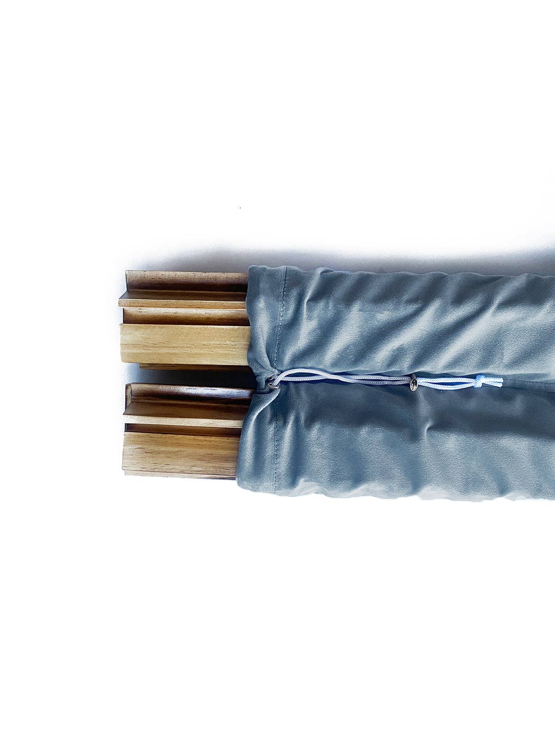 Bags are made of soft gray velvet and inside you will find 4 compartments, one for each rack+pusher. Each side of the bag closes securely with metal cord stoppers. Our bags fit our 20" racks perfectly and work great for any racks 20" or shorter.