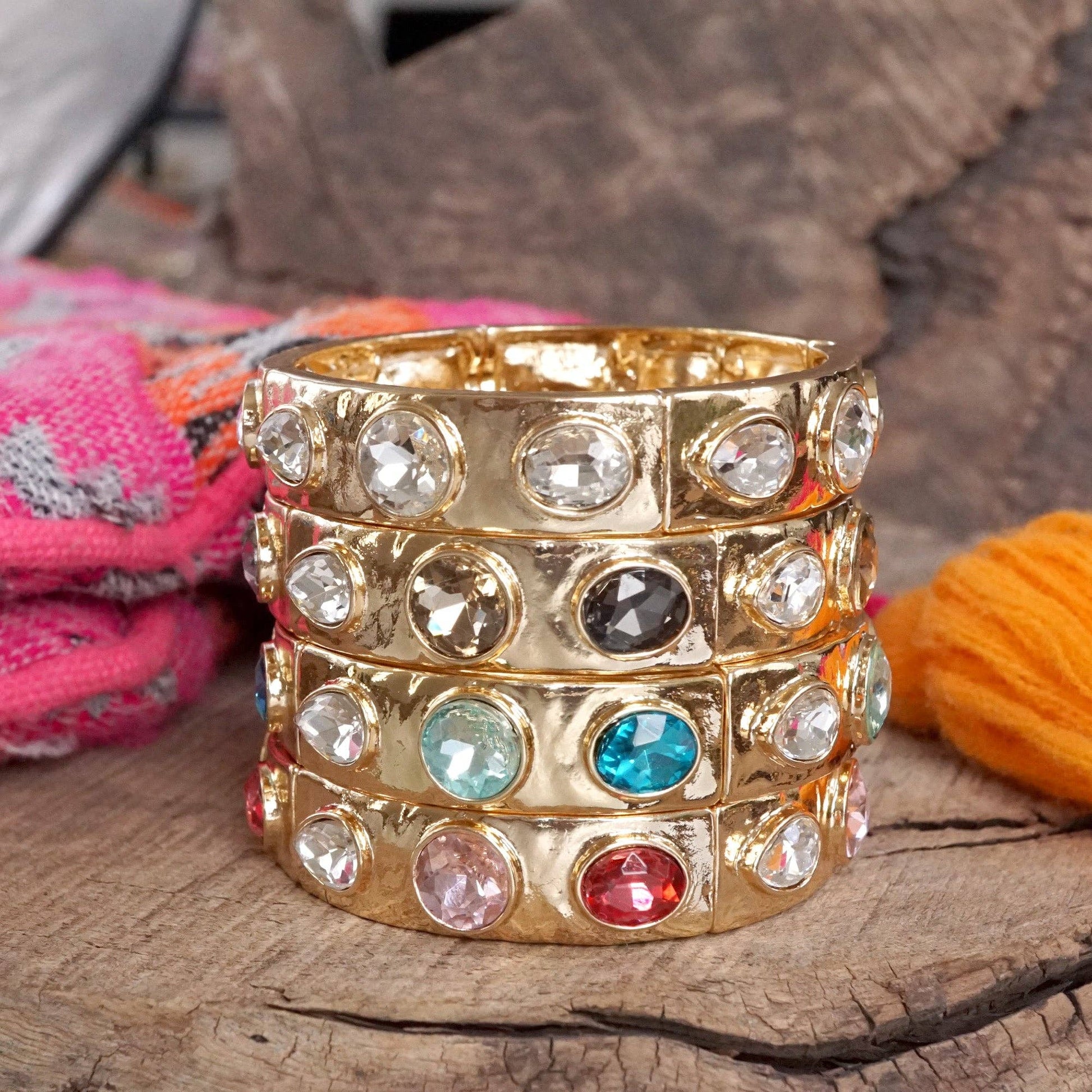 Sparkly Crystal Stretch Bangles – Gold Tone with Color Options