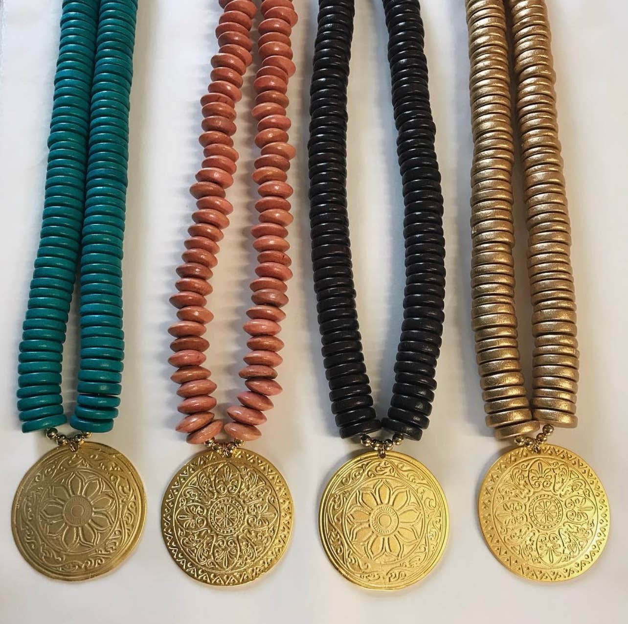 The Ray — a refined statement. Featuring a gold circle pendant and delicate rondelle beads, designed to elevate your everyday.