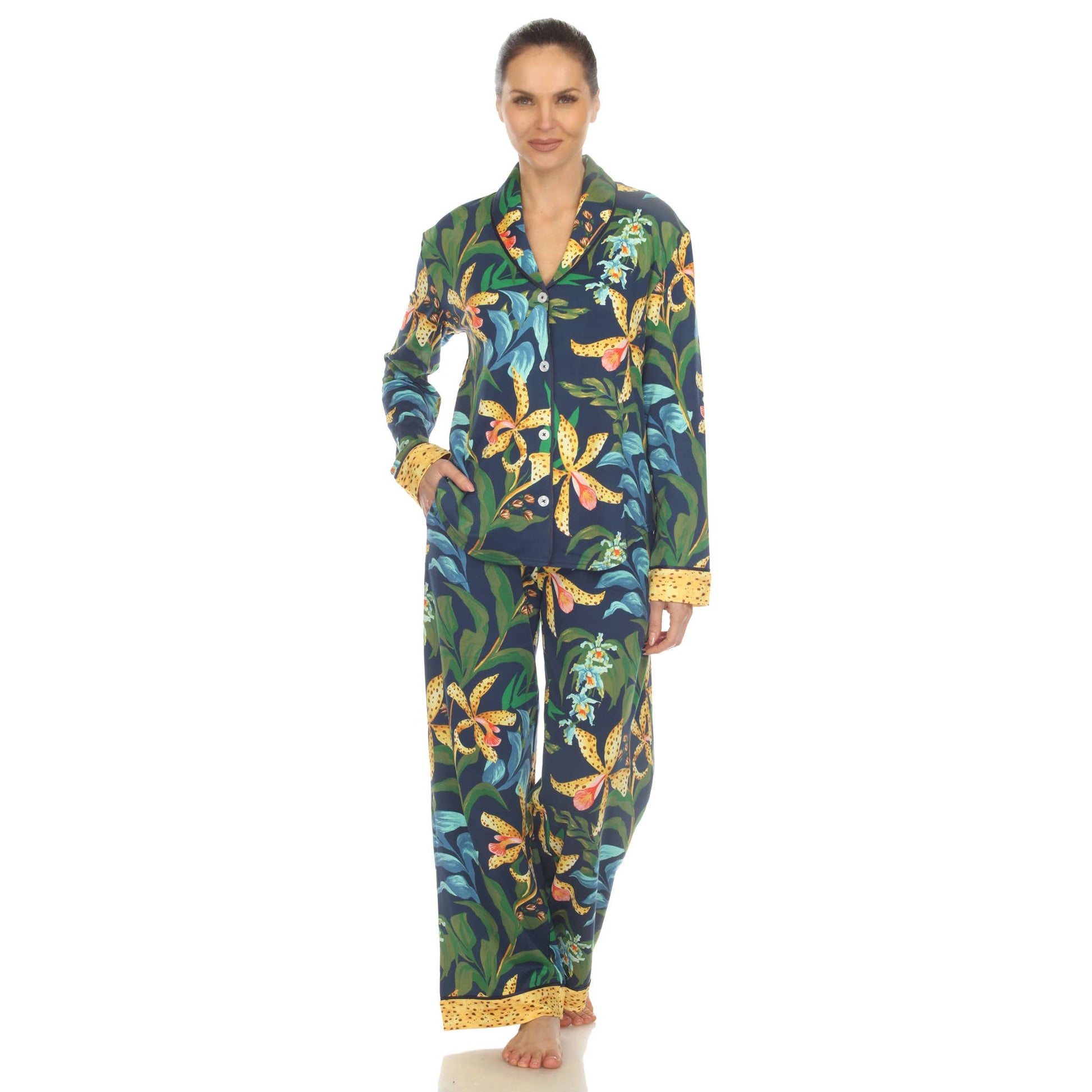 Women's Two Piece Wildflower Print Pajama Set: Navy / S